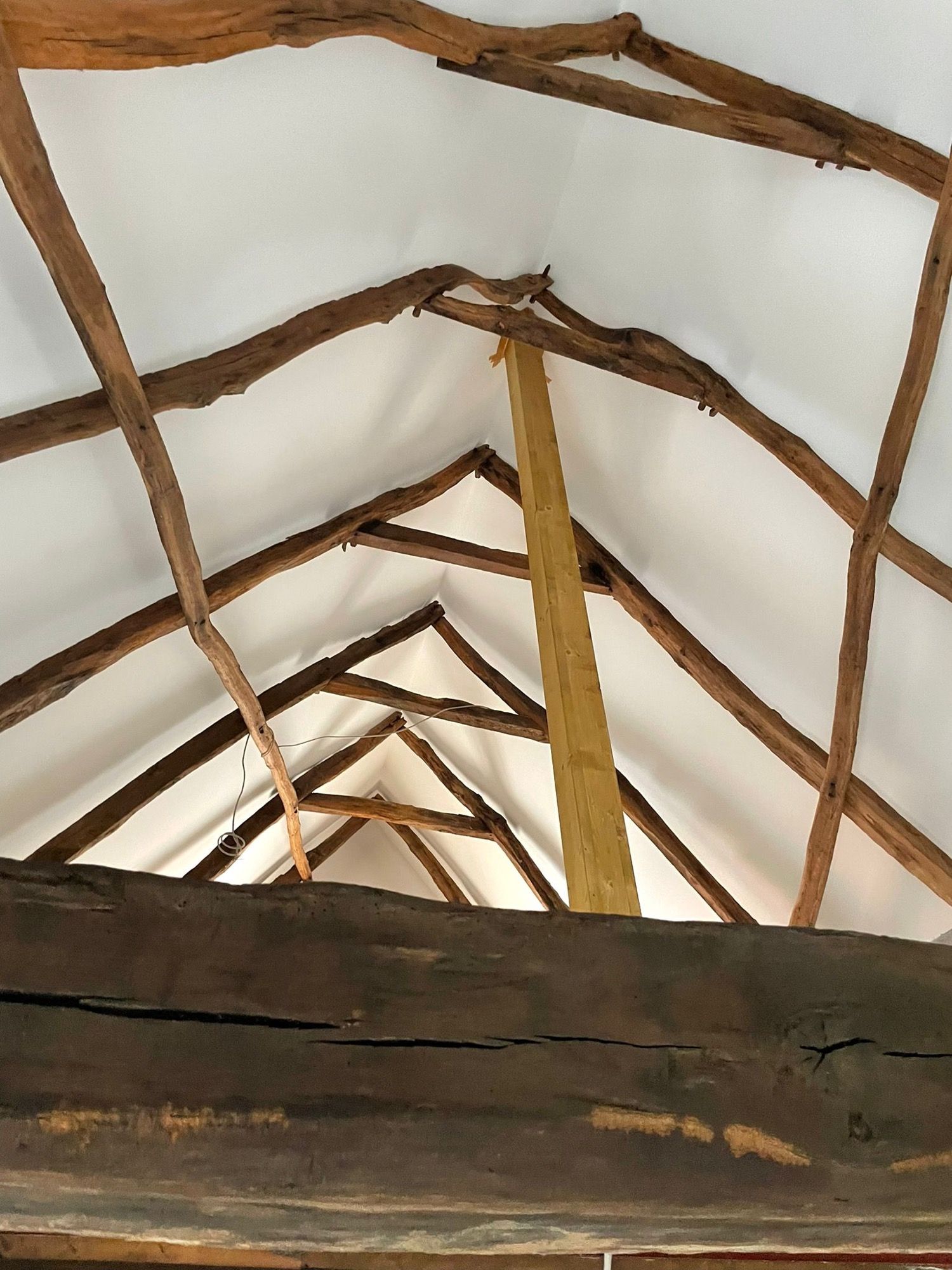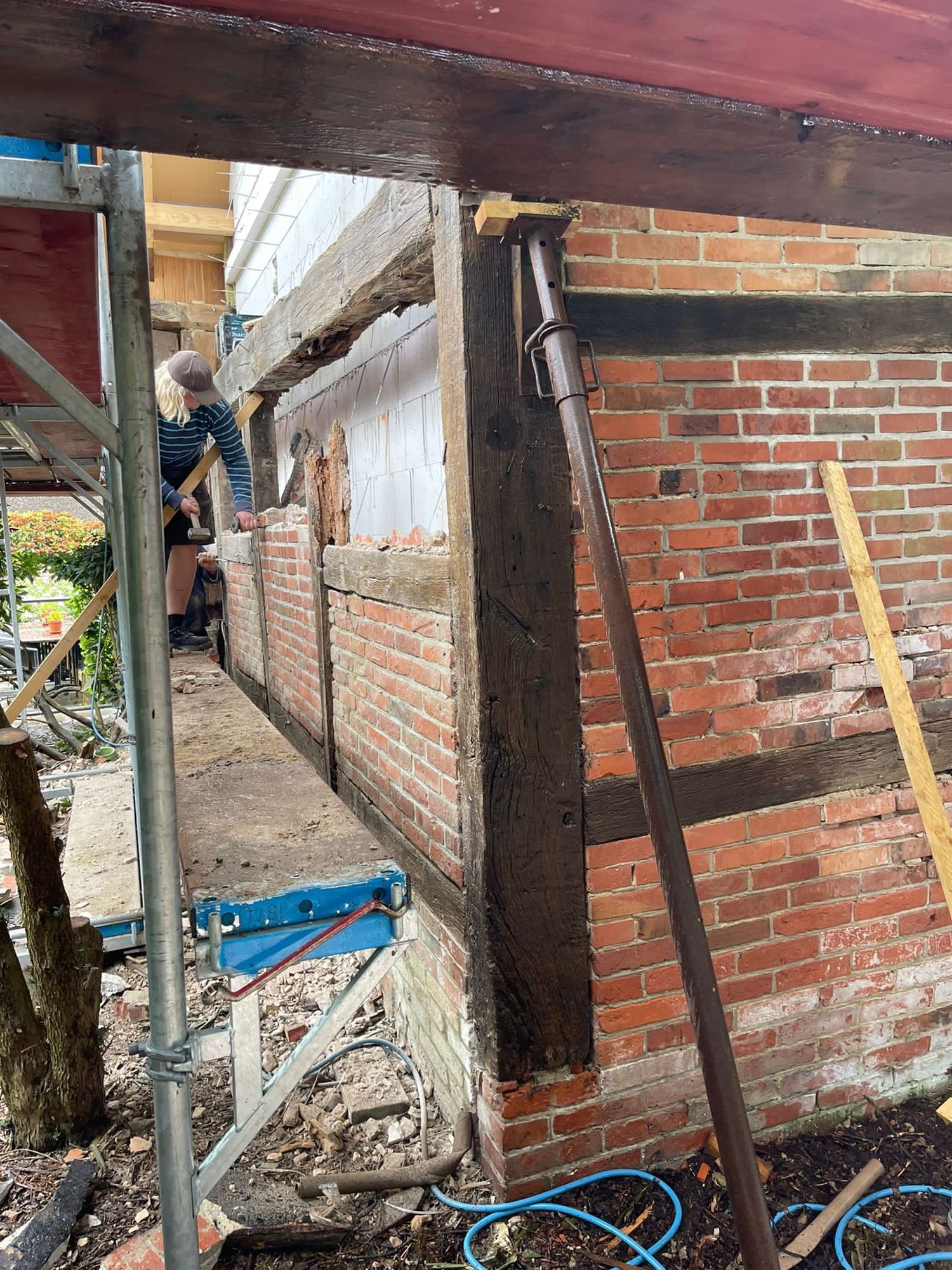 Der Spieker des Ahrenshofs stand in 2021 als marodes und zeitgleich historisch imposantes Bauwerk dar. Kaum vorstellbar, dass diese Balken das Gemäuer und den Dachstuhl noch aufrecht erhielten.